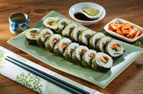 es un plato de origen coreano elaborado a base de arroz blanco cocido y otros ingredientes enrollados en alga prensada. Puede venir acompañado de danmuji (encurtido de rábano) kimchi.1 Este plato es uno de los más reconocidos de la gastronomía coreana.